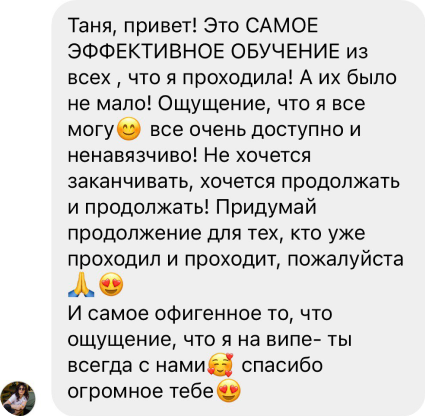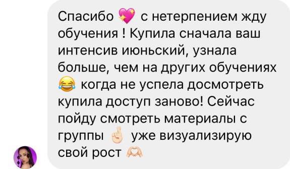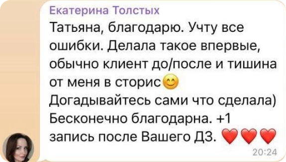 сразу после оплаты ты получишь доступ в закрытый канал ПРОКАЧКИ с ёмкими уроками по привлечению клиентов + задания к урокам